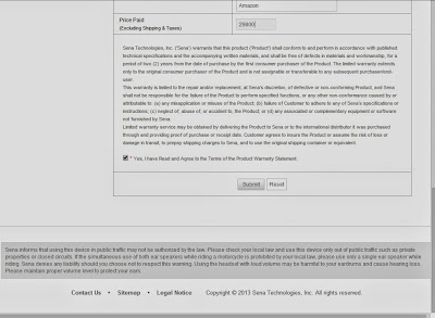 限定保証サービスは、セナにか、によって購入された国際的な販売代理店に製品を提供し、購入または受領日を証明するものを提供することによって得ることができる。顧客が製品に保険をかけるか、輸送中の紛失や損傷のリスクを想定し、セナに発送料を前払いすると、元の輸送用コンテナまたは同等を使用することに同意します。